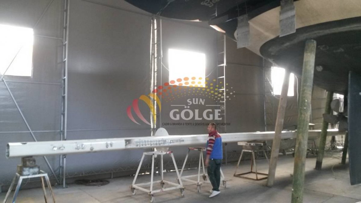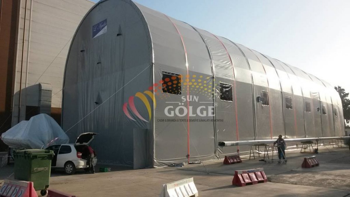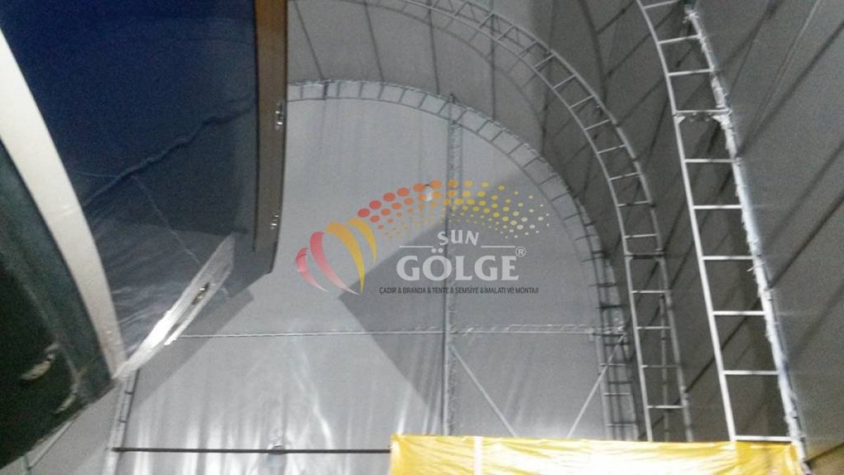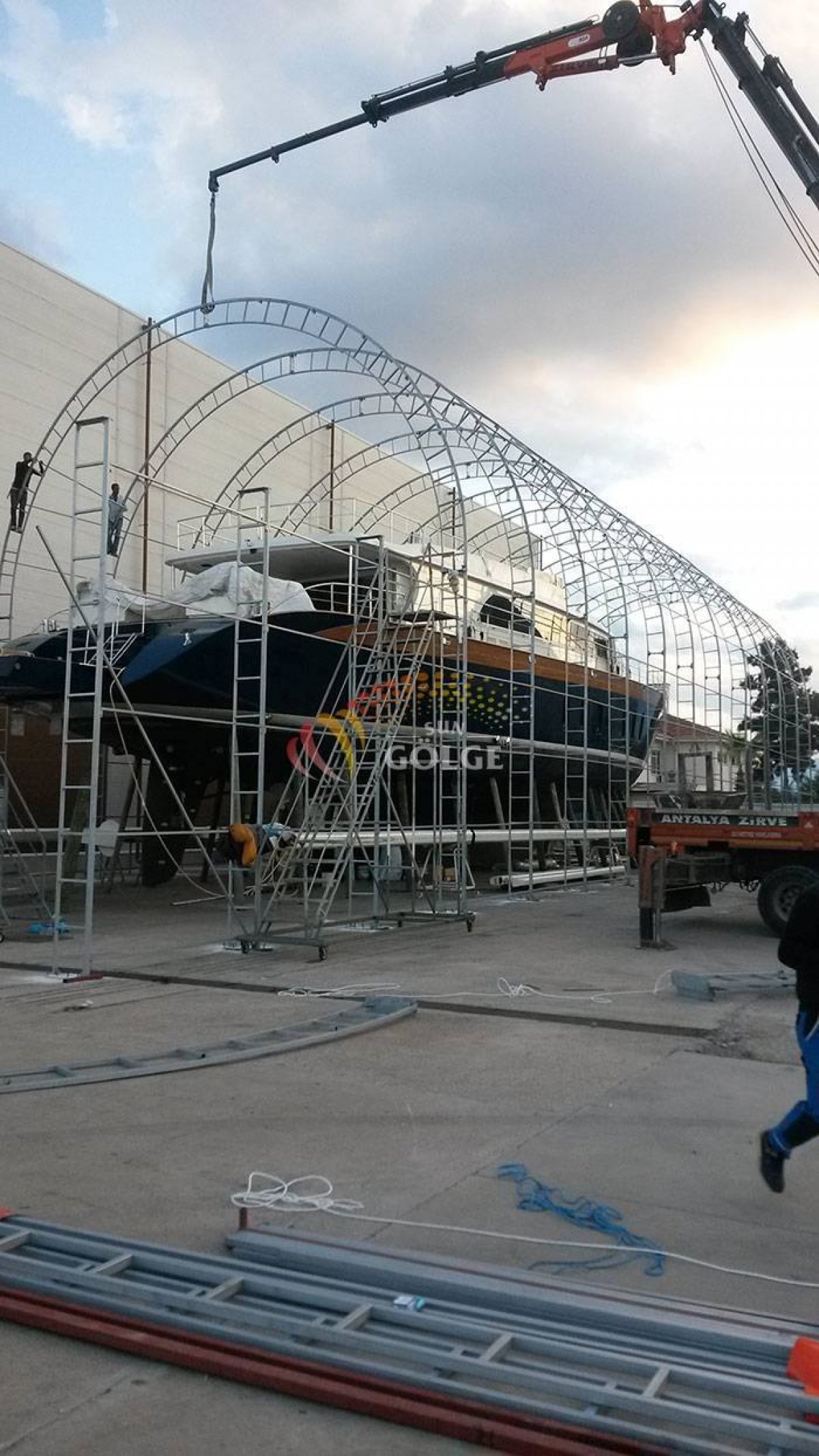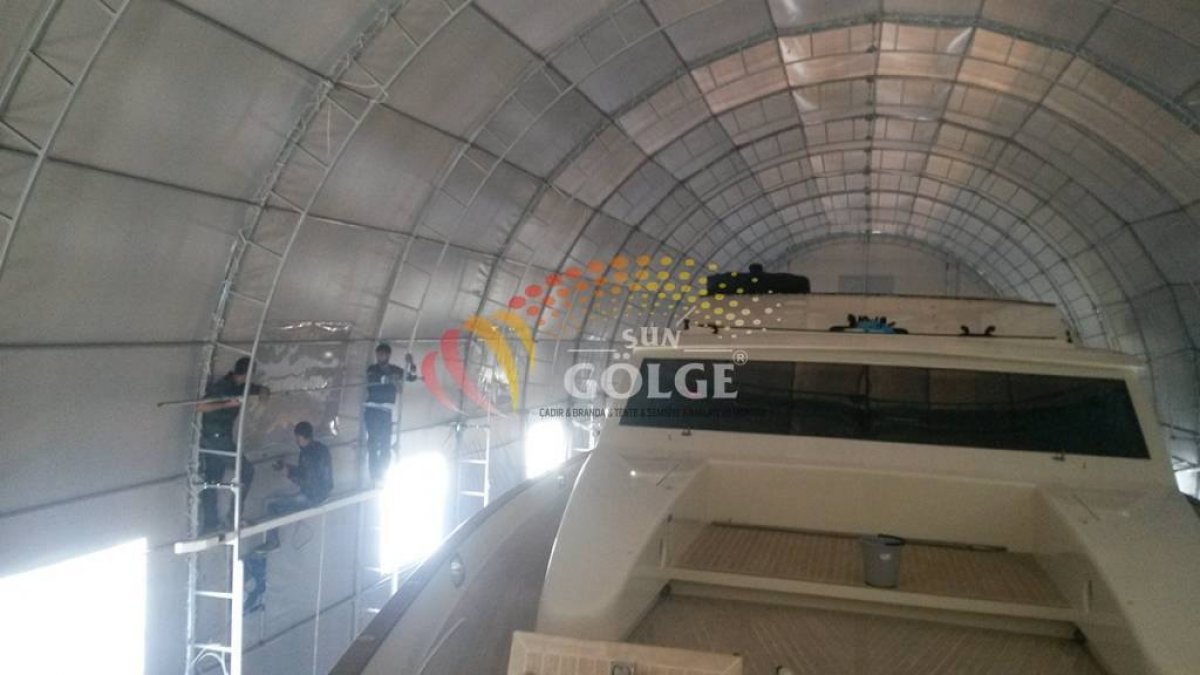 Yat Bakım Hangarı; Çelik konstrüksiyon, branda imalatı ve montajı tarafımızdan yapılmıştır.